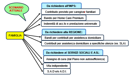 - presentare formalmente la richiesta di sostegno. Ma le richieste sono diverse, a servizi ed amministrazioni differenti, il che implica per la famiglia un’ulteriore odissea tra luoghi dove chiedere. Inoltre diversi interventi (come Home Care Premium dell’INPS, e molti bonus delle Regioni) sono accessibili solo tramite bandi, e quindi il cittadino deve sapere quali sono attivi e quando scadono, e riuscire a presentare la domanda entro le scadenze.